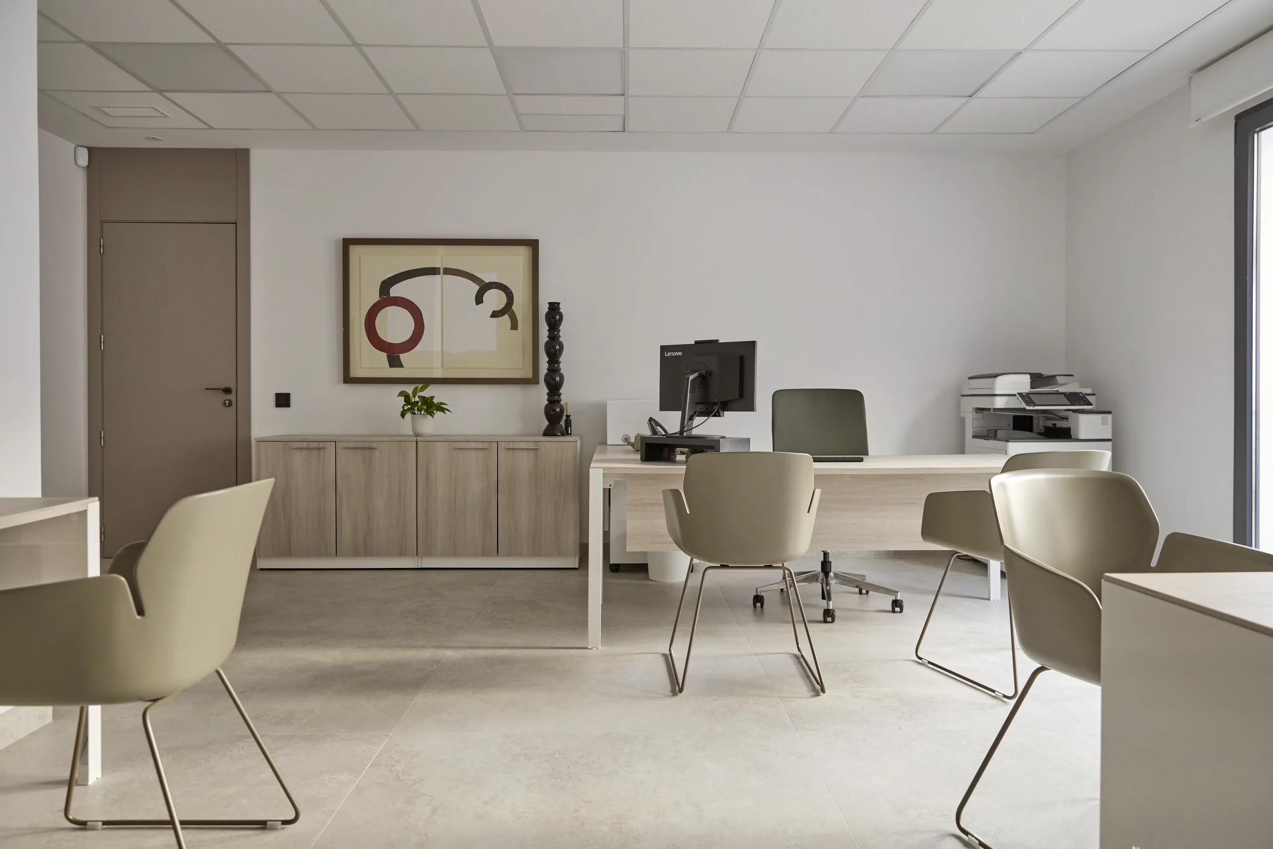 En el proyecto, se ha utilizado las colecciones LANCE, ADVANCE+ en los puestos de trabajo ejecutivos, proporcionando un diseño moderno y