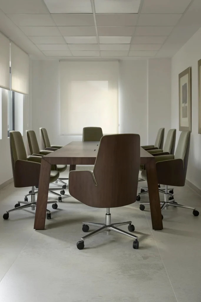 Una de las características destacadas de este salón es el mobiliario utilizado: El modelo de Channel Light junto con la mesa de conferencías y panelado Tailor Made.