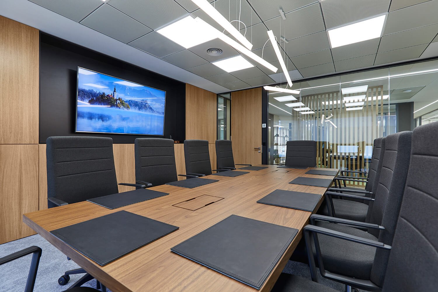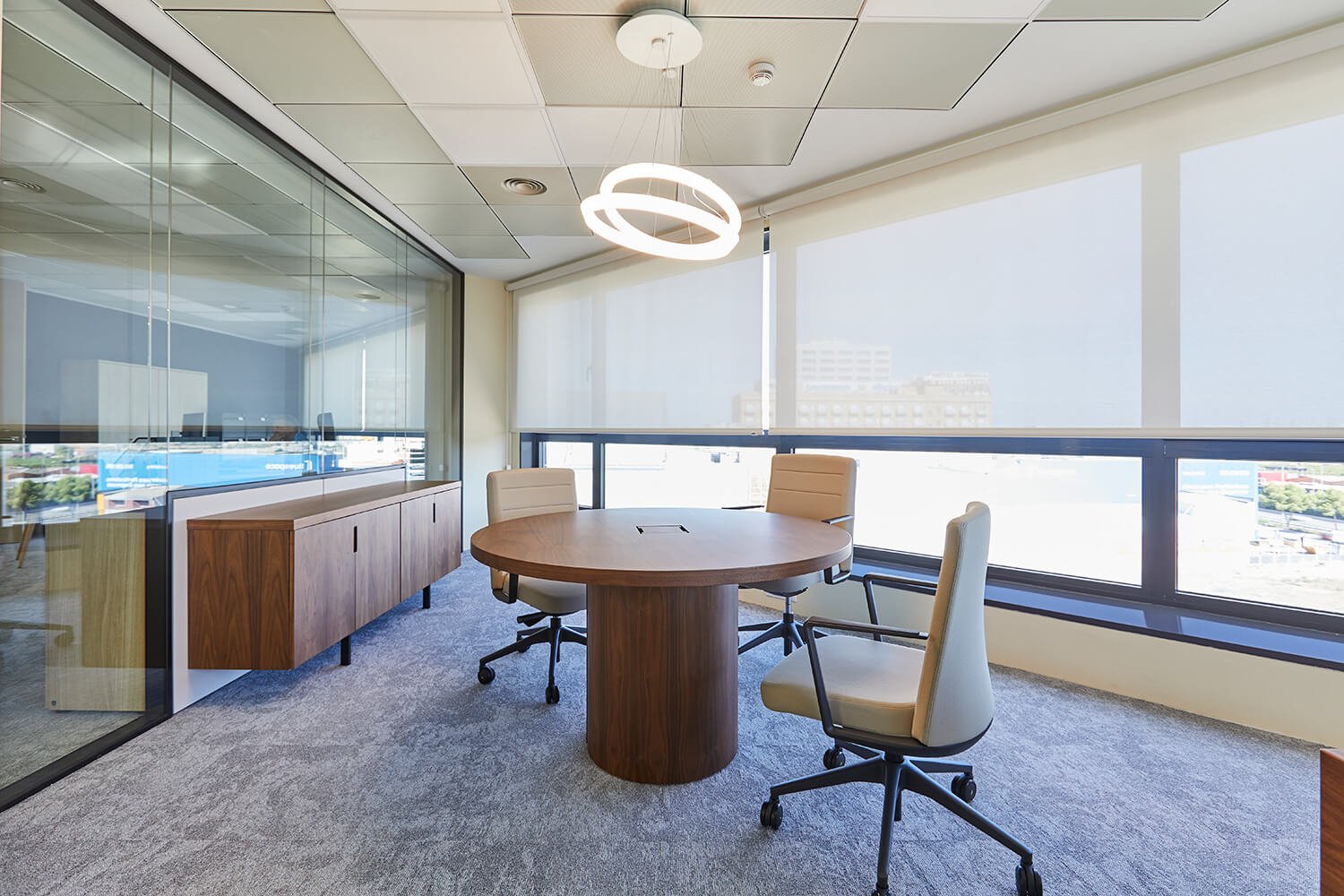 En la Sala de Consejo una mesa Freeport con la librería Taylor made de Ofifran crea un estilo contemporáneo.
